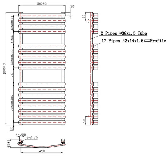Eastbrook Staverton Electric Curved Chrome Tube on Tube Designer Towel Rail 1800mm x 500mm