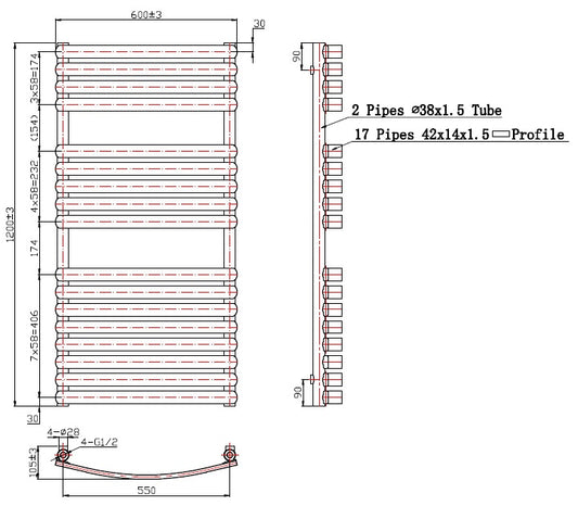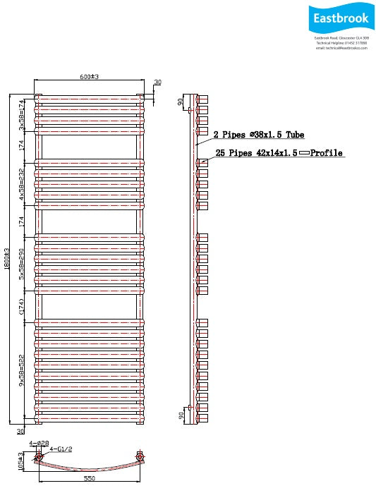 Eastbrook Staverton Electric Curved Chrome Tube on Tube Designer Towel Rail 1800mm x 600mm