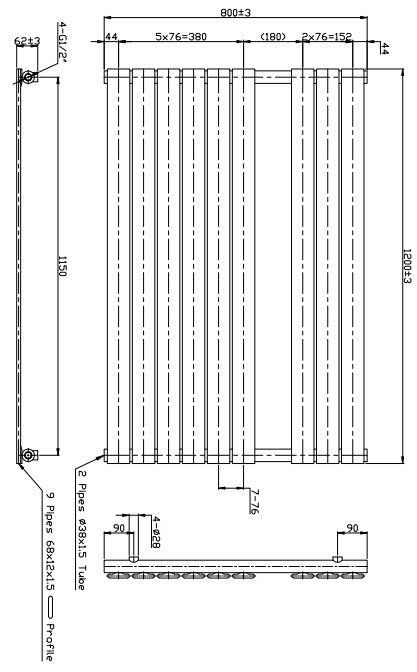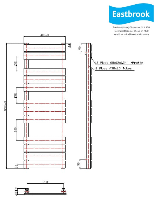 Eastbrook Staverton Electric Straight Chrome Tube on Tube Designer Towel Rail 800mm x 1200mm
