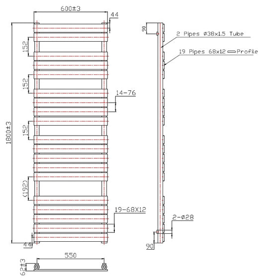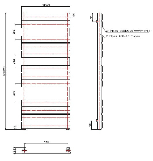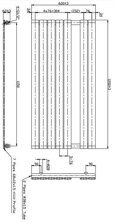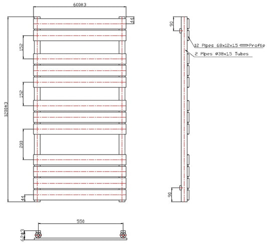 Eastbrook Staverton Electric Straight Chrome Tube on Tube Designer Towel Rail 600mm x 1200mm