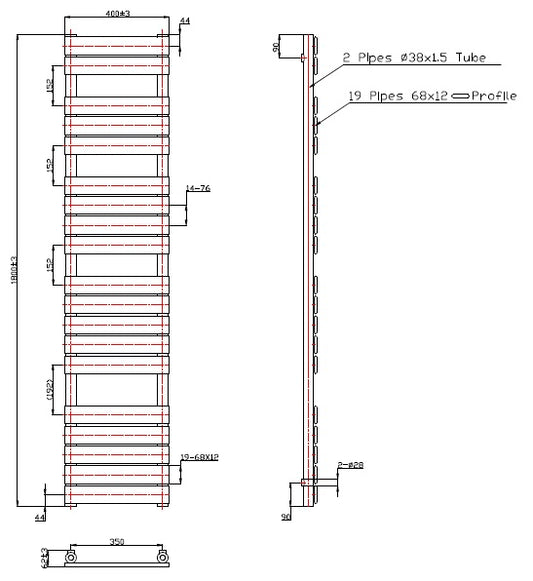 Eastbrook Staverton Electric Straight Chrome Tube on Tube Designer Towel Rail 1800mm x 400mm