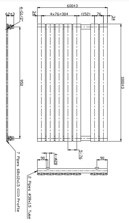 Eastbrook Staverton Electric Straight Chrome Tube on Tube Designer Towel Rail 600mm x 1000mm