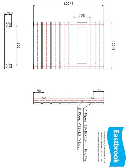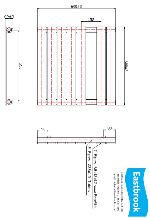 Eastbrook Staverton Electric Straight Chrome Tube on Tube Designer Towel Rail 600mm x 400mm
