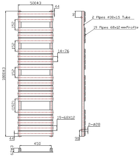 Eastbrook Staverton Electric Straight Chrome Tube on Tube Designer Towel Rail 1800mm x 500mm
