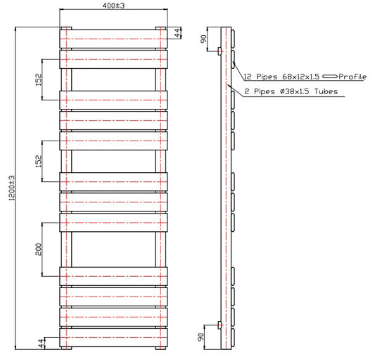Eastbrook Staverton Electric Straight Gloss White Tube on Tube Designer Towel Rail 1200mm x 400mm
