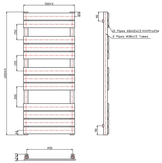Eastbrook Staverton Electric Straight Gloss White Tube on Tube Designer Towel Rail 1200mm x 500mm