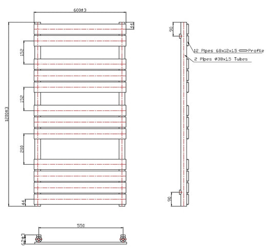 Eastbrook Staverton Electric Straight Gloss White Tube on Tube Designer Towel Rail 1200mm x 600mm