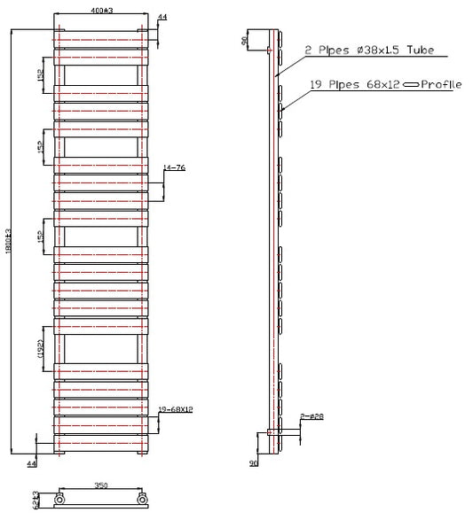Eastbrook Staverton Electric Straight Gloss White Tube on Tube Designer Towel Rail 1800mm x 400mm