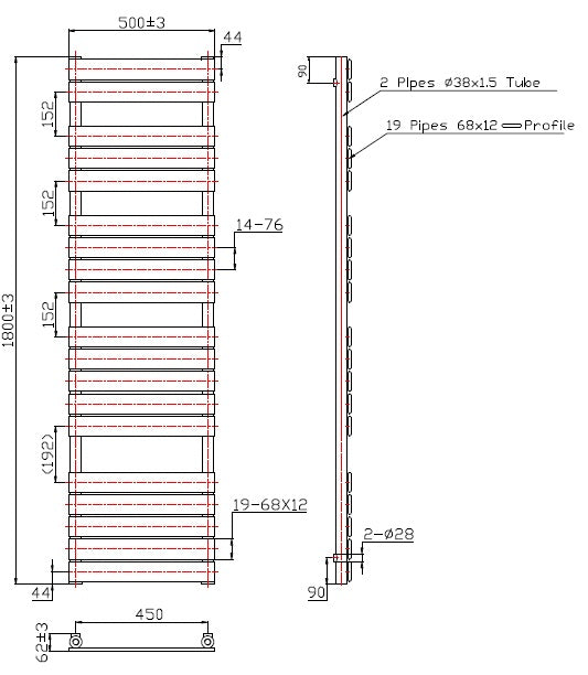Eastbrook Staverton Electric Straight Gloss White Tube on Tube Designer Towel Rail 1800mm x 500mm