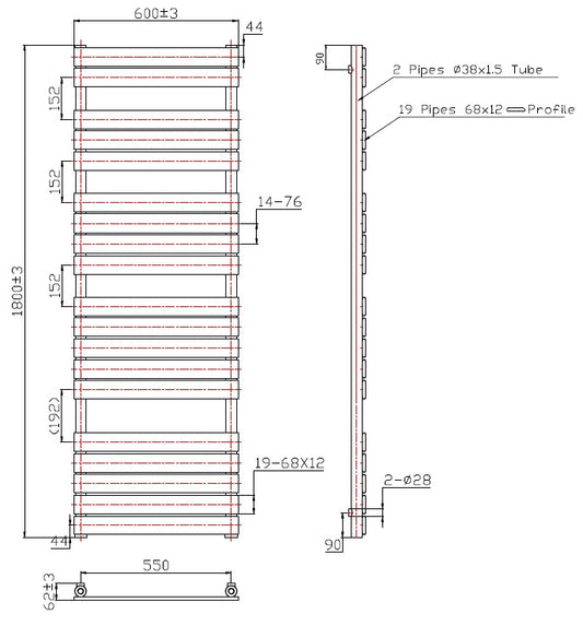 Eastbrook Defford Electric Gloss White Designer Towel Rail 1800mm x 600mm