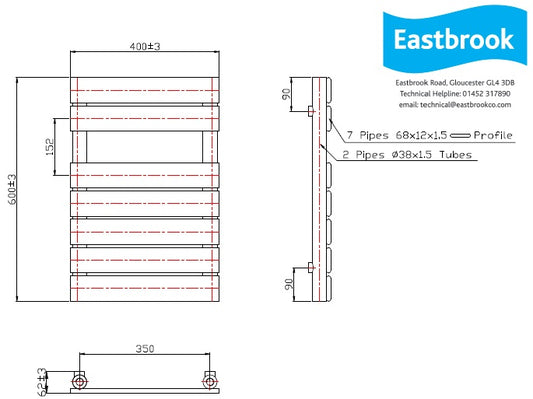 Eastbrook Staverton Electric Gloss White Designer Towel Rail 600mm x 400mm