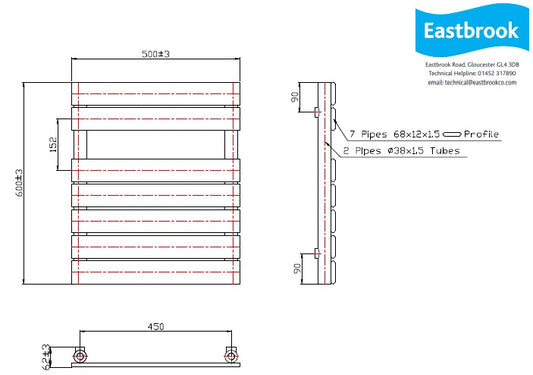 Eastbrook Staverton Electric Straight Gloss White Tube on Tube Designer Towel Rail 600mm x 400mm
