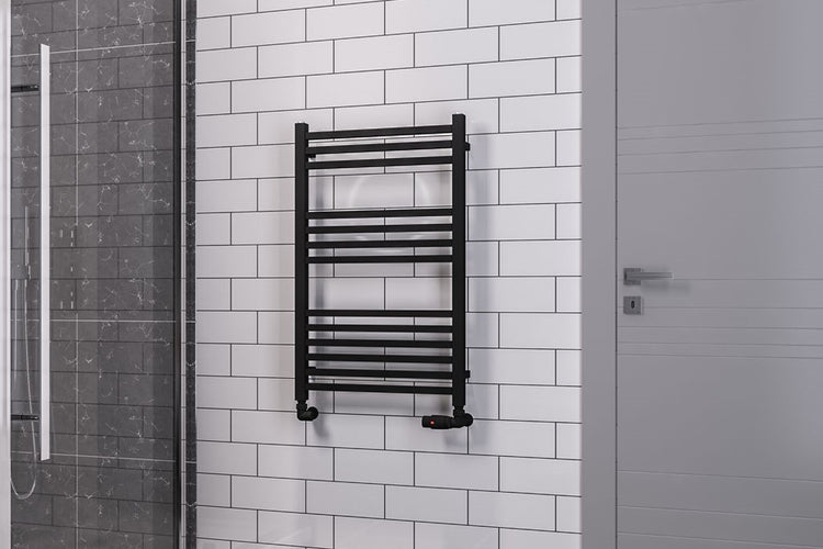 Eastbrook Tuscan Electric Round Straight Matt Black Towel Rail 800mm x 500mm