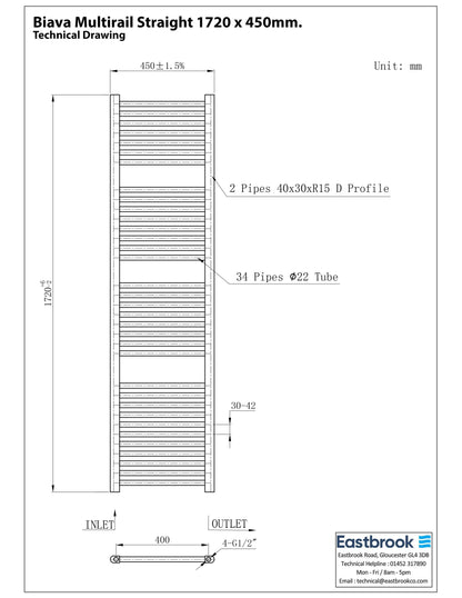 • Eastbrook Biava Electric Straight Chrome Towel Rail 1720mm x 450mm