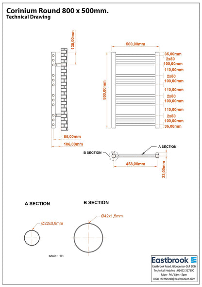 Equipped with rear fixing metal wall brackets, installation is straightforward and secure, providing peace of mind. Tested to meet rigorous BS EN 442 standards, this towel rail guarantees exceptional quality and performance.