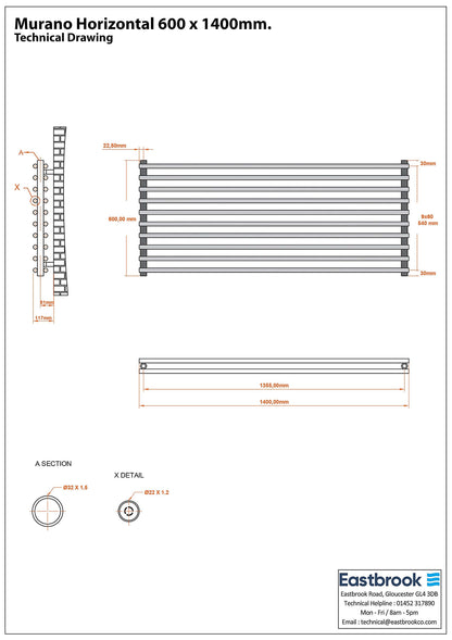 Introducing the Eastbrook Murano Horizontal Electric Matt Grey Designer Radiator 600mm x 1400mm, a sleek and efficient heating solution that combines contemporary design with exceptional performance. This radiator offers ample heat output while adding a touch of sophistication to your space.