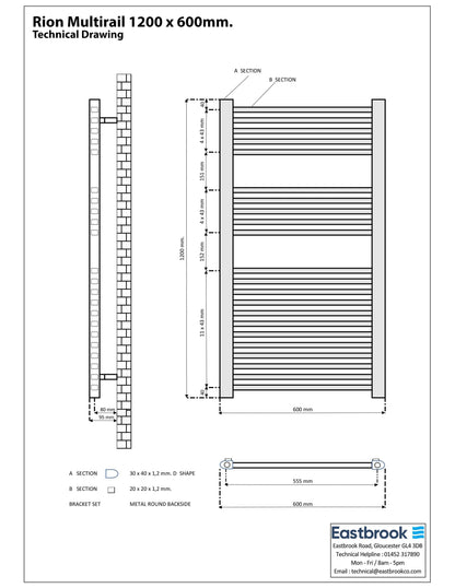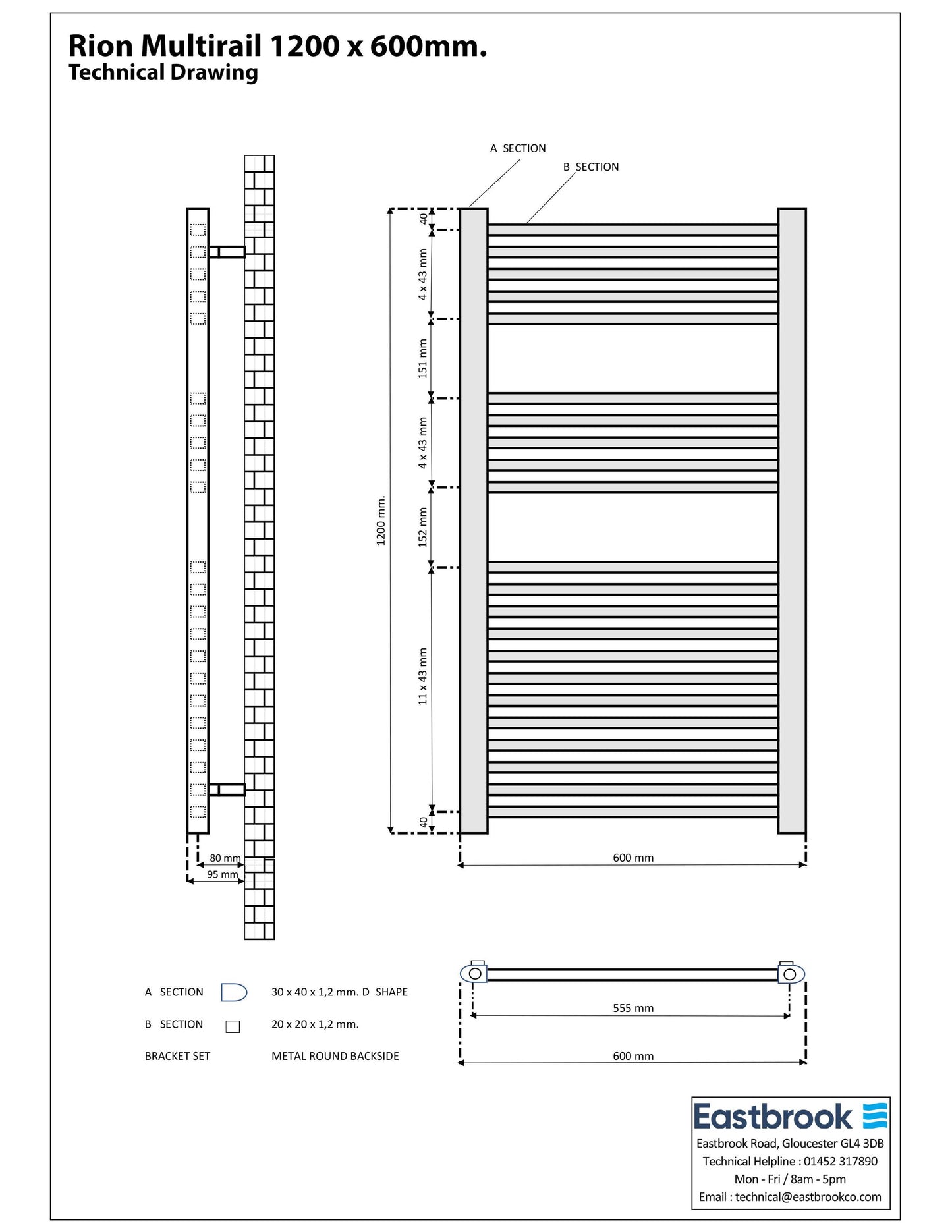 Crafted for durability and stability, the towel rail is equipped with 40x30mm D-shape vertical bars and secured with rear fixing metal wall brackets, ensuring a sturdy installation.