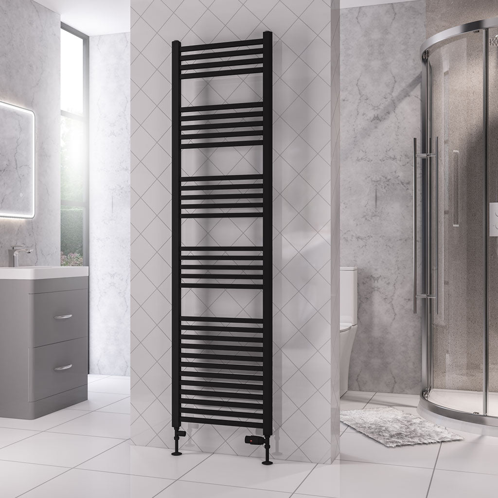 • Eastbrook Rion Electric Straight Matt Black Towel Rail 1800mm x 500mm