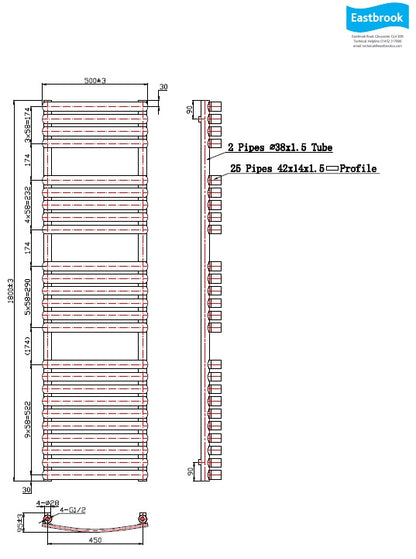 Crafted with 42 x 14mm horizontal bars and tube on tube construction, the Staverton towel rail ensures efficient heat distribution and maximum space utilization. Its curved design not only enhances the aesthetic appeal but also provides ample space for hanging towels.