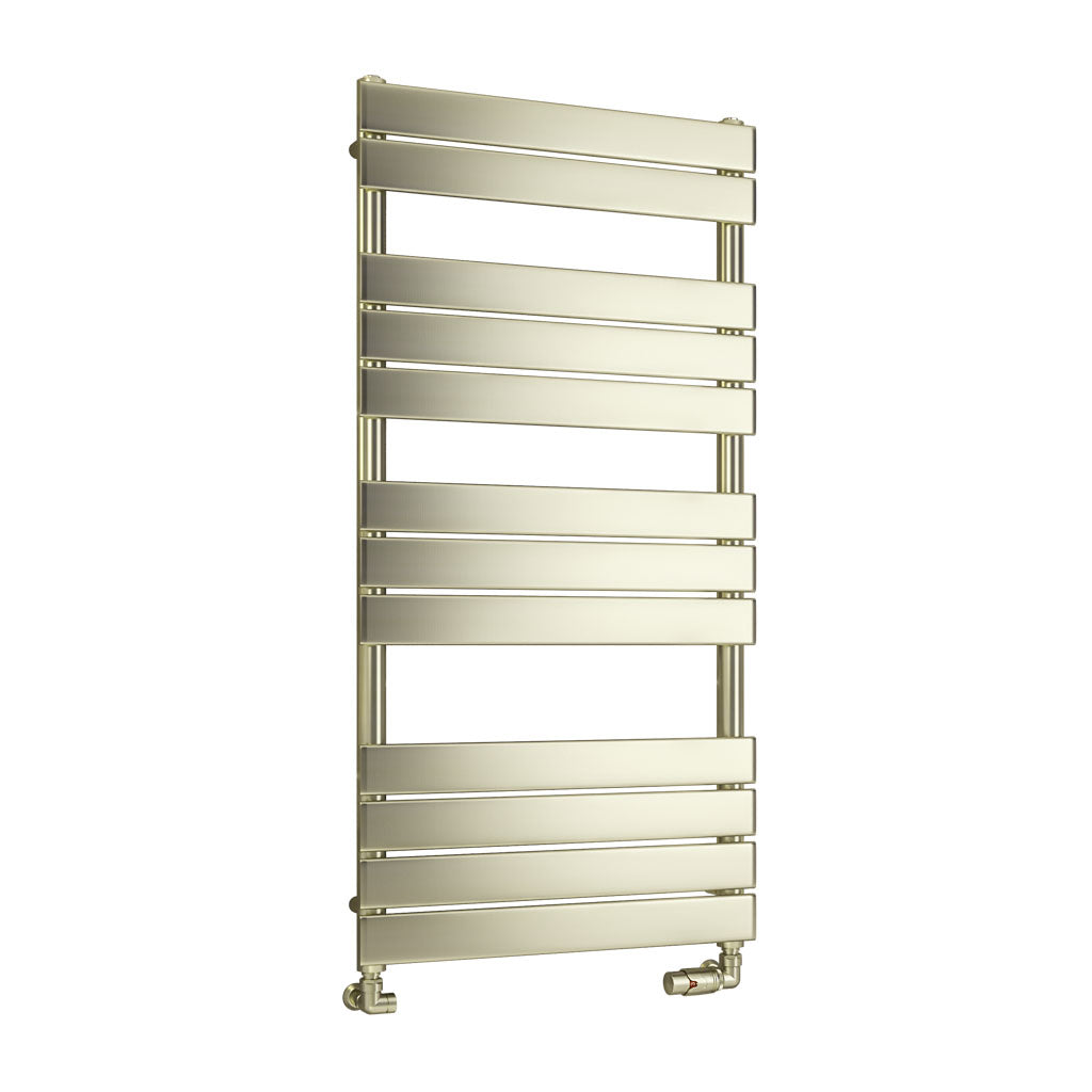 • Eastbrook Staverton Electric Straight Brushed Brass Tube on Tube Designer Towel Rail 1200mm x 600mm