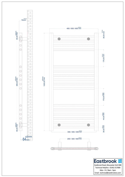 • Eastbrook Wingrave Electric Straight Chrome Towel Rail 1000mm x 500mm